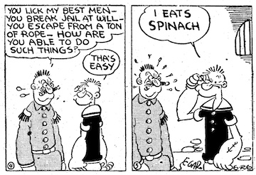 (left) On June 26, 1931 Segar's Popeye announces the source of his strength.