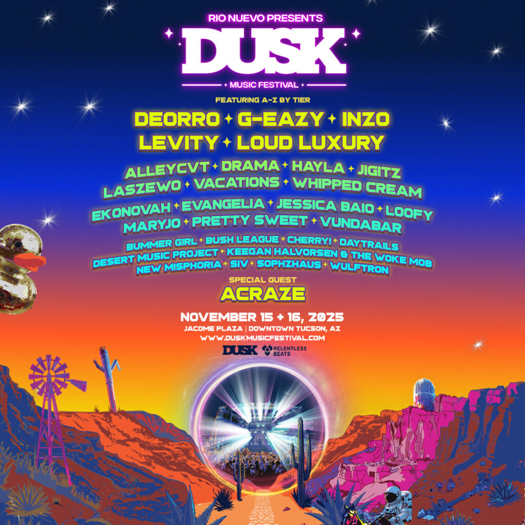 As the Dusk Music Festival gears up for its ninth year at Jácome Plaza in downtown Tucson, November 15-16th of 2025 , much of the buzz is focused on global headliners like Deorro, G-Eazy, and Loud Luxury. But one of the festival’s greatest strengths has always been its commitment to showcasing local and regional talent—the artists shaping Arizona’s sound and helping define Tucson’s creative identity. This year, several Arizona-based performers are set to bring their unique voices to the Dusk stages, blending homegrown artistry with the festival’s international energy.