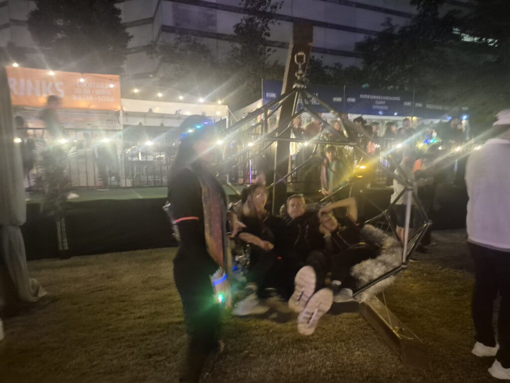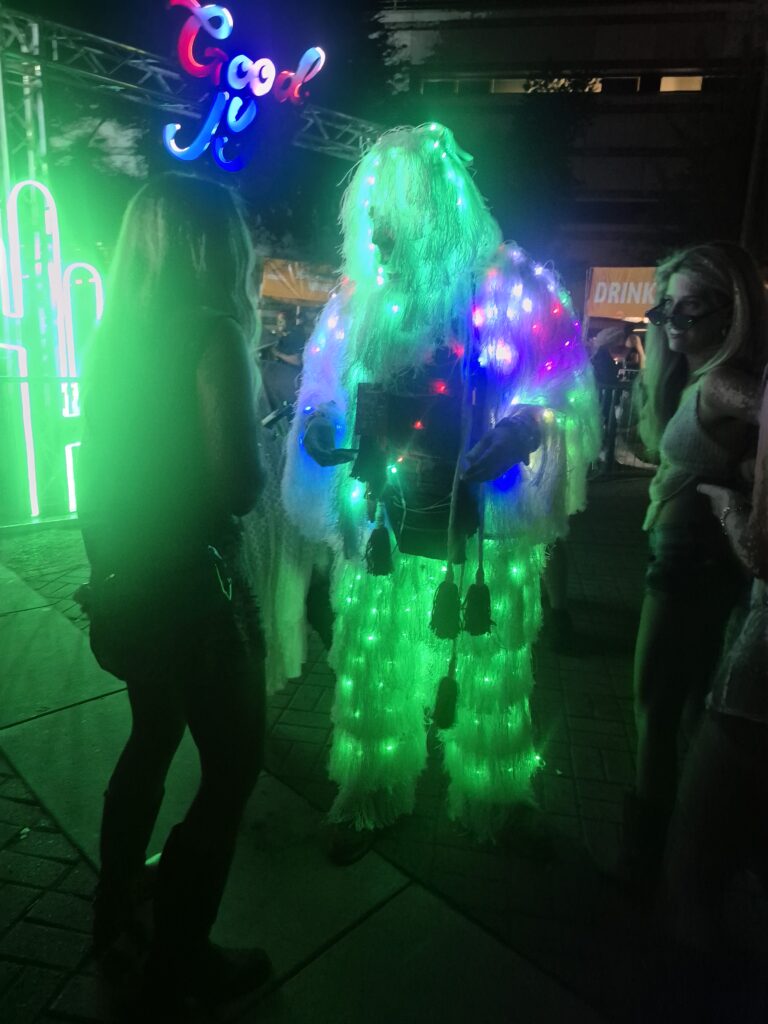 Art installations transformed the festival into a living, breathing gallery. Highlights included glowing floating jellyfish on Pennington Street, which swayed above the crowd like serene spirits, and “The Merkaba,” a geometric lounge by DIDO with interactive lights that invited attendees to explore and create their own immersive moments. Floating chairs, mystical visuals, and ambient lighting throughout the grounds made wandering the festival feel like stepping through a dreamscape, highlighting Tucson’s vibrant creative community.