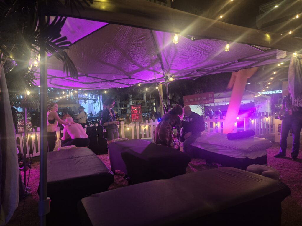 The VIP experience added a touch of luxury, with plush lounges and massage booths offering a quiet retreat to recharge between sets. The gentle hum of massages, soft seating, and private spaces created a welcoming oasis amid the festival’s energetic pulse.