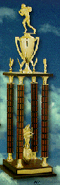 All trophies come with your choice of figures and colors. We have every athletic or academic figure available in stock for FAST delivery. You may choose the column colors from Blue, Red, Green, Purple or Black with gold or silver figures. Please specify when ordering in the inscription box.